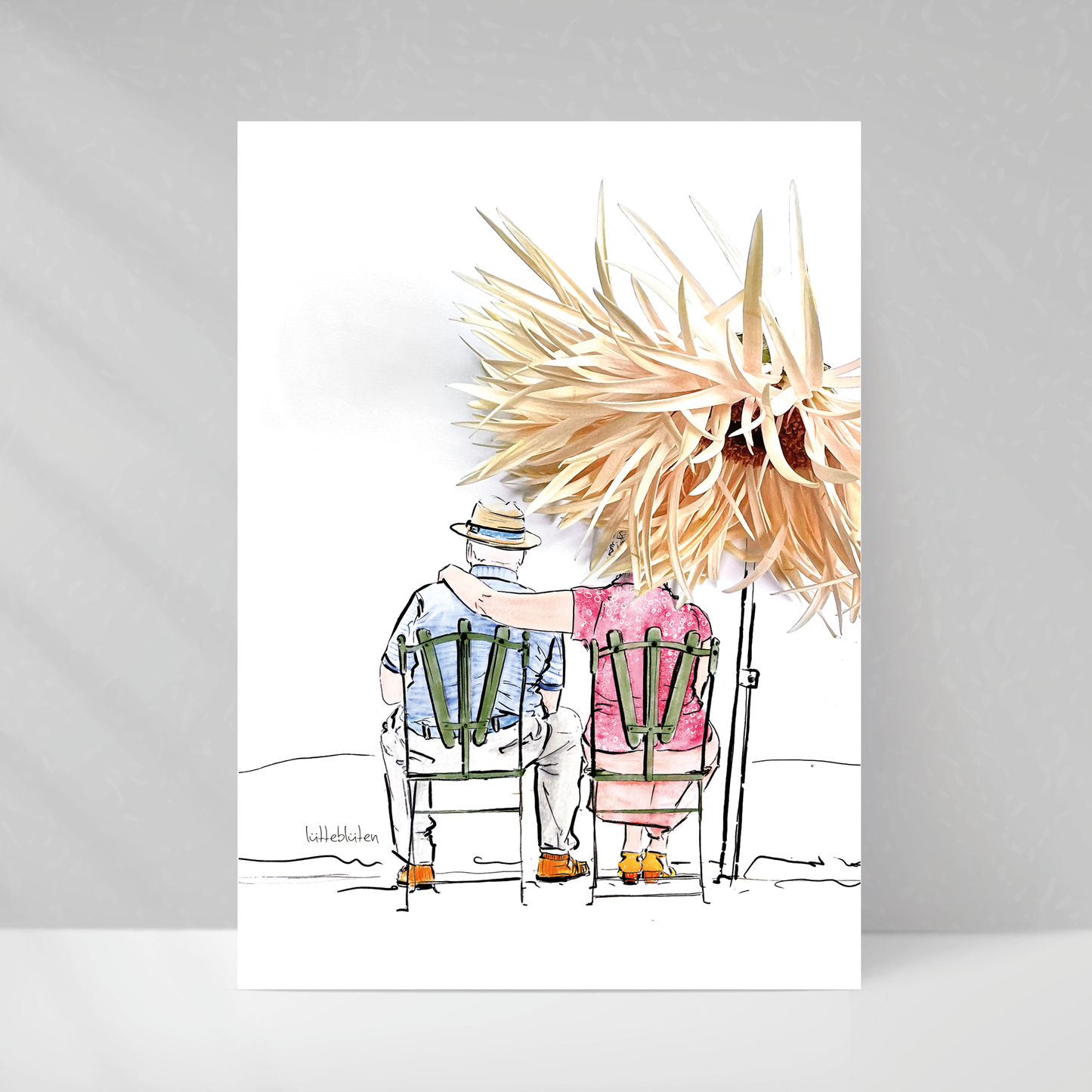 Mit Oma und Opa am Strand – Karte mit Umschlag: 105x148 mm