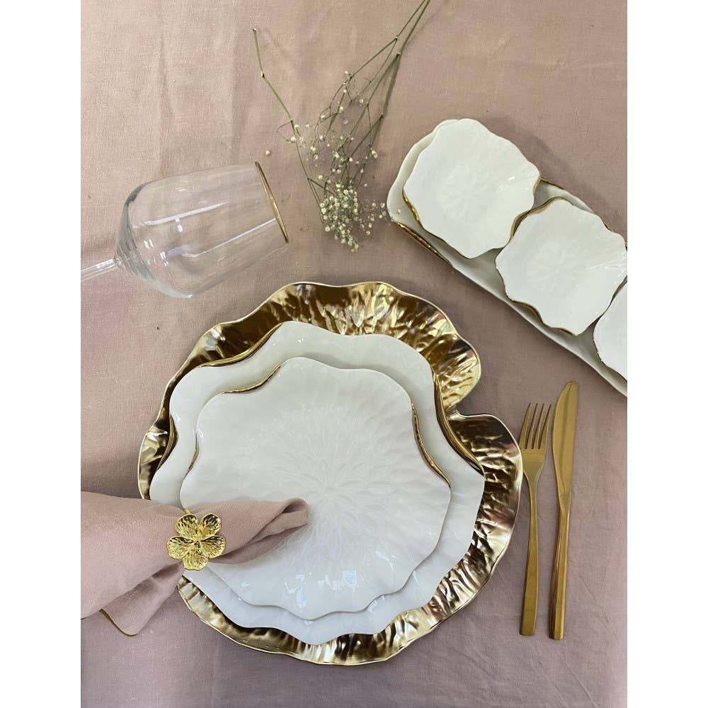 Dessertteller aus weißem Porzellan mit goldenen Rändern