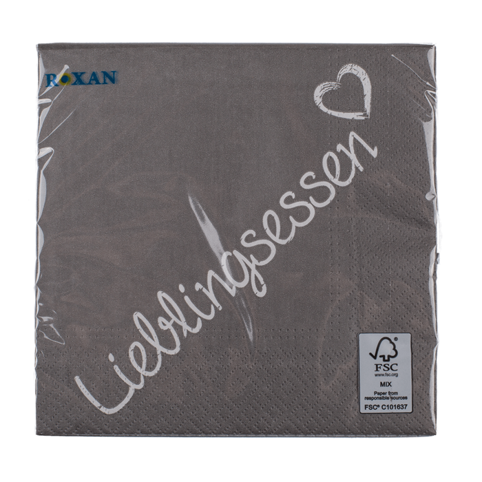 Papierservietten, Lieblingsessen, grau mit weißer Aufschrift, ca. 33 x 33 cm, 3-lagig, 20 Stk. im Polybeutel - Die dreilagigen Papierservietten sind ein echter Hingucker auf Ihrem Esstisch.