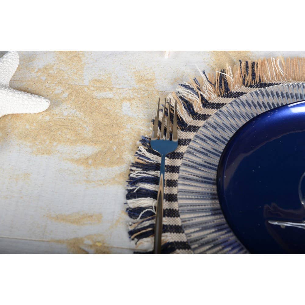 Tischset aus gestreiftem Jutegewebe in Beige und Blau