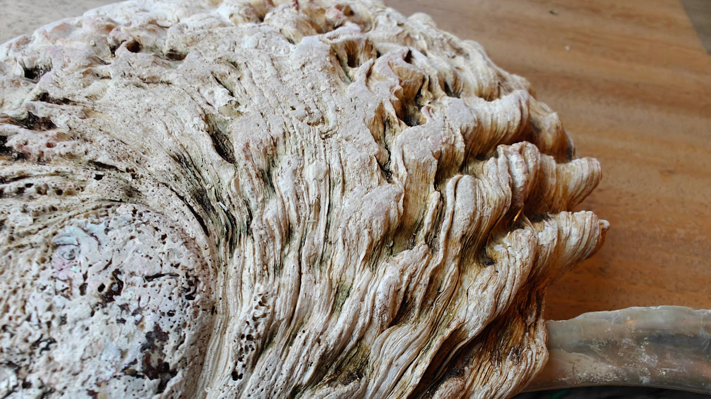Bringen Sie die Pracht des Ozeans in Ihr Zuhause mit dieser wunderschönen Abalone-Schale von 15+ cm. Jede Schale ist ein einzigartiges Stück Natur, geformt vom Meer und gekennzeichnet durch ihre wunderschöne perlmuttartige Innenseite. Der irisierende Glanz zeigt eine reiche Farbpalette von Silber-, Grün-, Blau- und Rosatönen – ein wahres Kunstwerk der Natur.