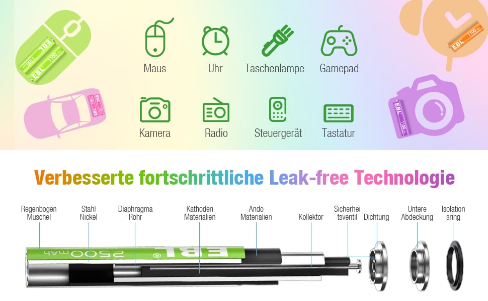 EBL 10 x AA 1,2V 2500mAh NIMH Color